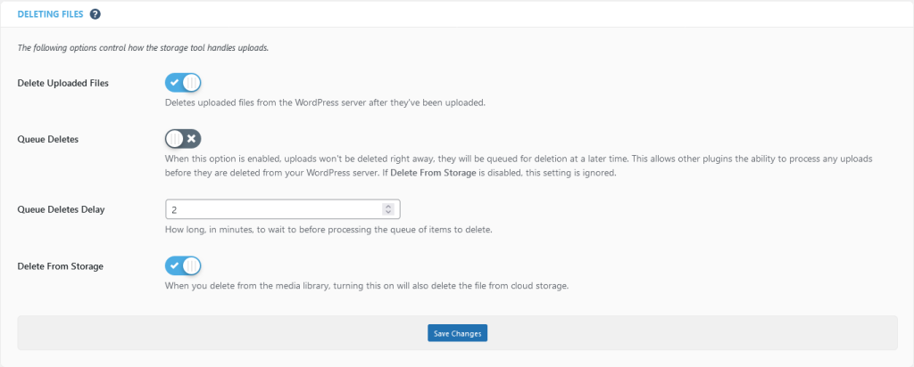It will then process the details and perform the required Test. Click Finish once the tests are complete. Here is how you have configured your WordPress to use Object Storage. You will have to configure primary settings in the plugin. Access Media Cloud >> Settings and jump to the Section Deleting Files. Configure it as below depending on your requirements.