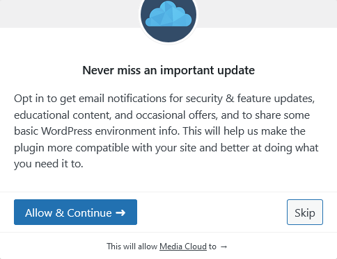 As soon as you activate the plugin, the window to configure will open. Click on Skip.