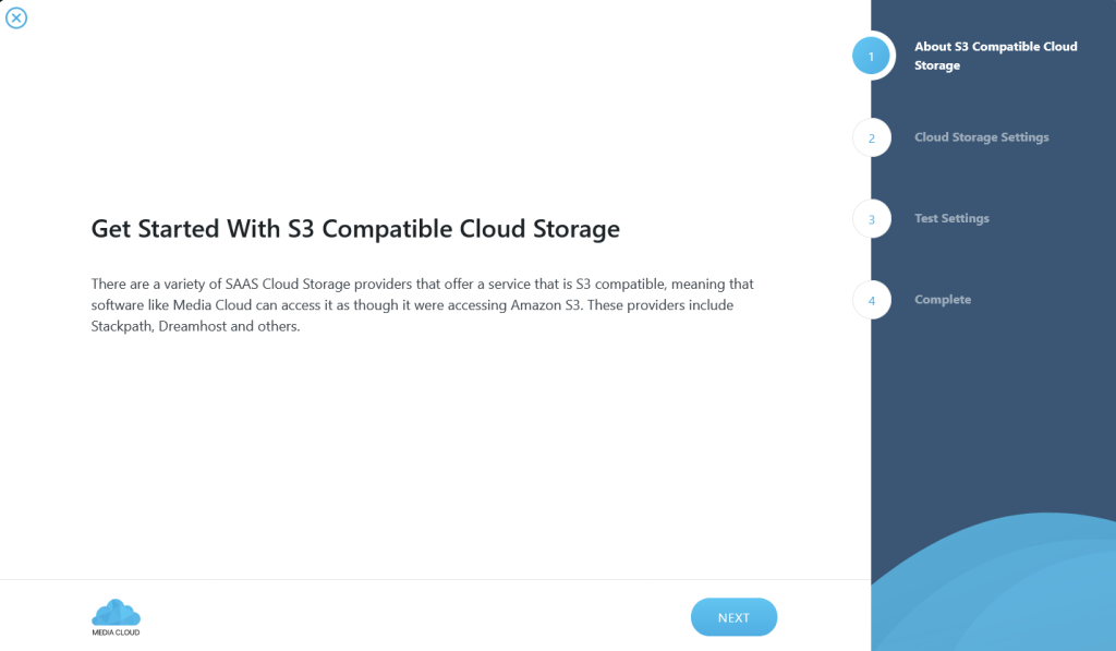 You will be shown the Setup Wizard. Select the S3 Compatible storage option and click on Next.